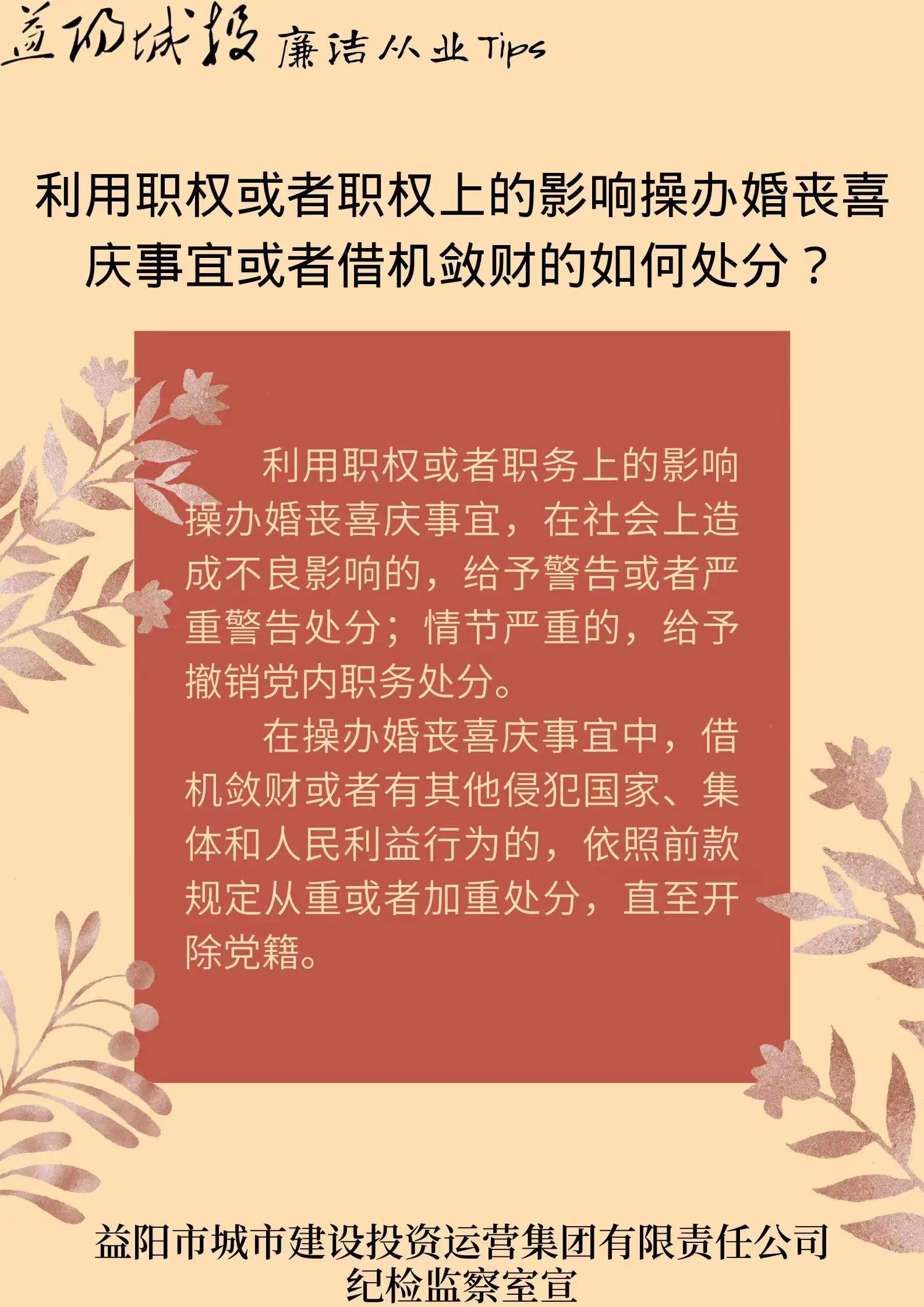 益陽城投廉潔海報(bào)——利用職權(quán)或者職權(quán)上的影響操辦婚喪喜慶事宜或者借機(jī)斂財(cái)?shù)娜绾翁幏?/h3>